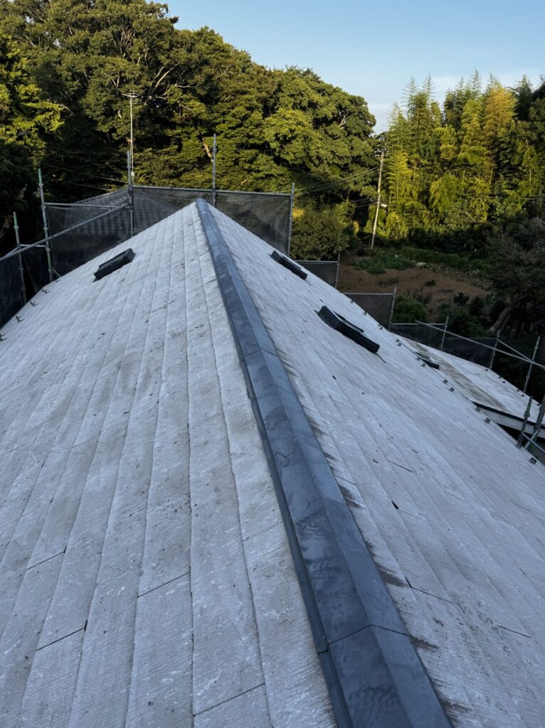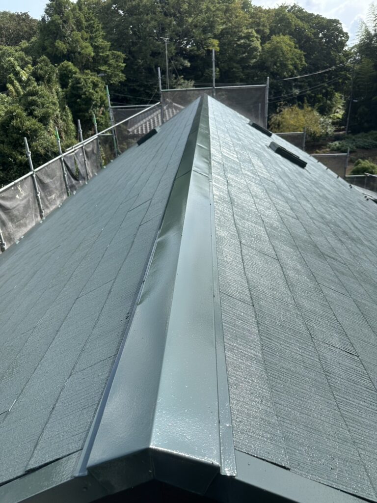 そのためこちらの判断で下塗りを3回、上塗りを2回計5回塗りにし、屋根材の保護プラス艶々になるようにしました。