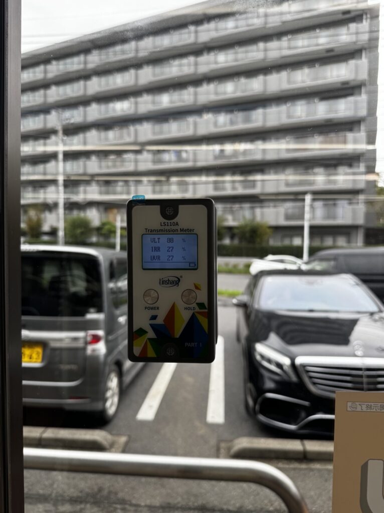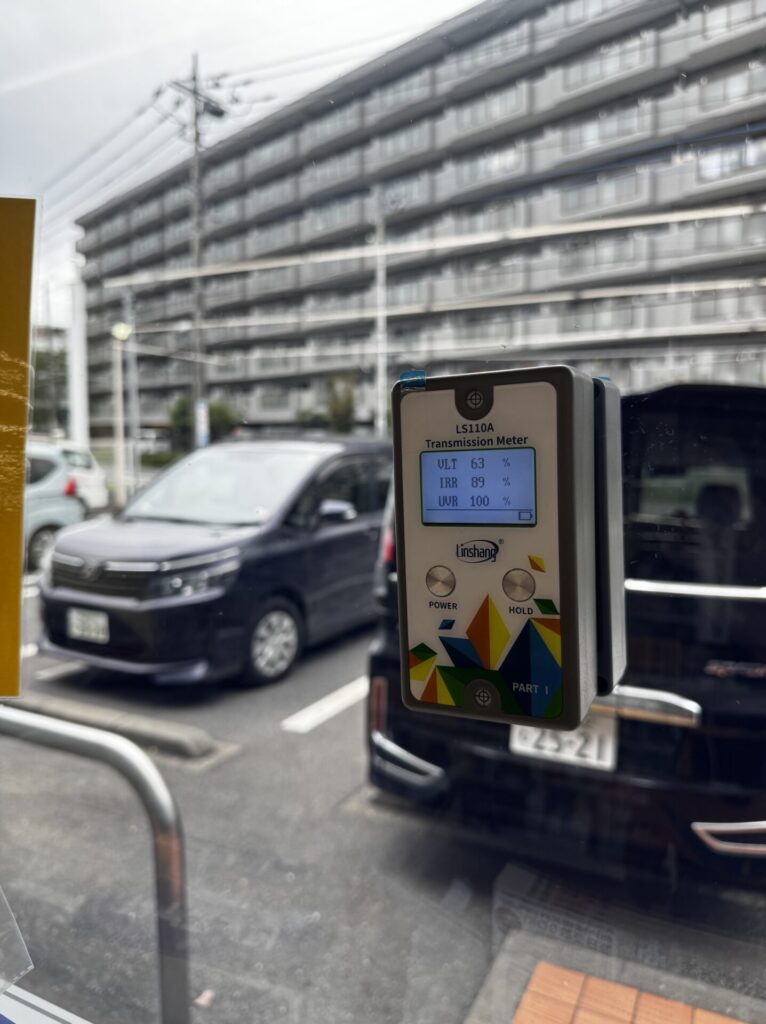 「LS110A Transmission Meter(透過率計)」を使って窓ガラスの性能を測定した結果です。
